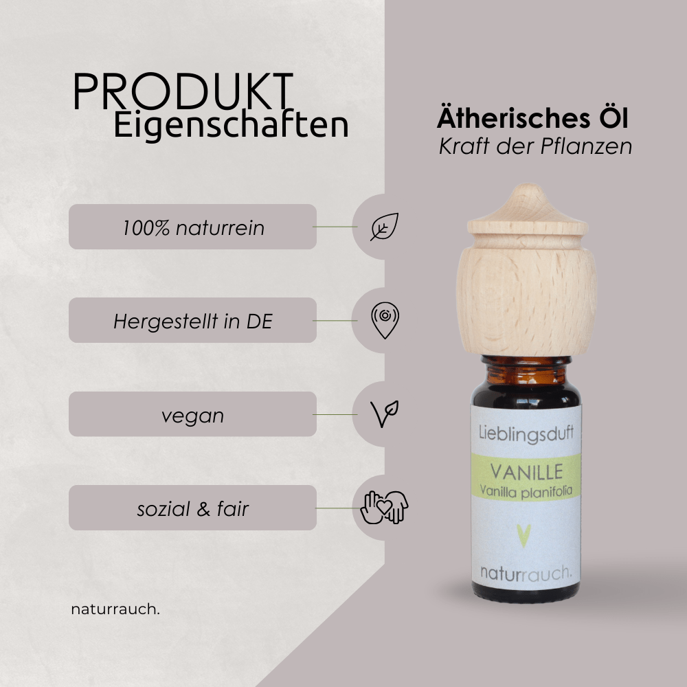 Vanille wird seit Jahrhunderten für ihre wohltuende Wirkung geschätzt. Sie kann die Stimmung heben, das Herz öffnen und eine Atmosphäre voller Wärme und Sinnlichkeit schaffen. Ihr zarter Duft vermittelt ein Gefühl von Heimat und Vertrautheit und wirkt gleichzeitig ausgleichend und inspirierend.