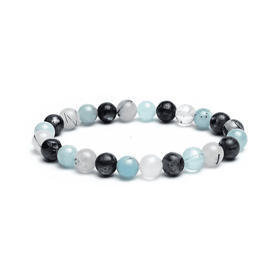 Dieses wunderschöne Armband vereint die mystische Tiefe des Labradorits, die sanfte Klarheit des Aquamarins und die schützende Kraft des Turmalinquarzes. Eine kraftvolle Kombination für innere Balance, mentale Stärke und spirituelle Verbindung.