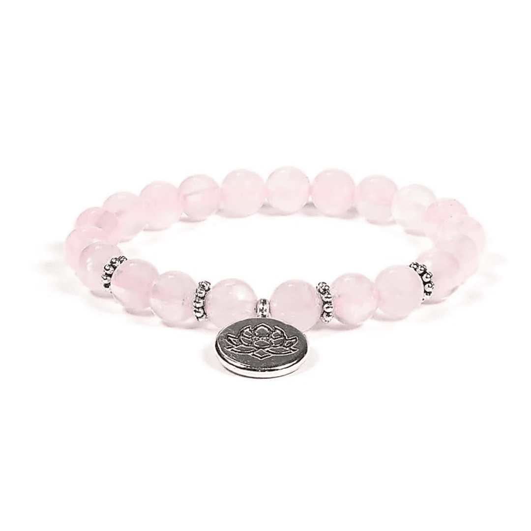 Liebe & Harmonie. Diese bezaubernde Mala in Armbandform verbindet die sanfte, liebevolle Energie des Rosenquarzes mit der tiefen Symbolik der Lotusblüte. Mit 21 zarten Rosenquarz-Perlen strahlt dieses Armband Geborgenheit, Selbstliebe und emotionale Harmonie aus – ideal für Meditation, Achtsamkeit oder als täglicher Begleiter für dein Herz.