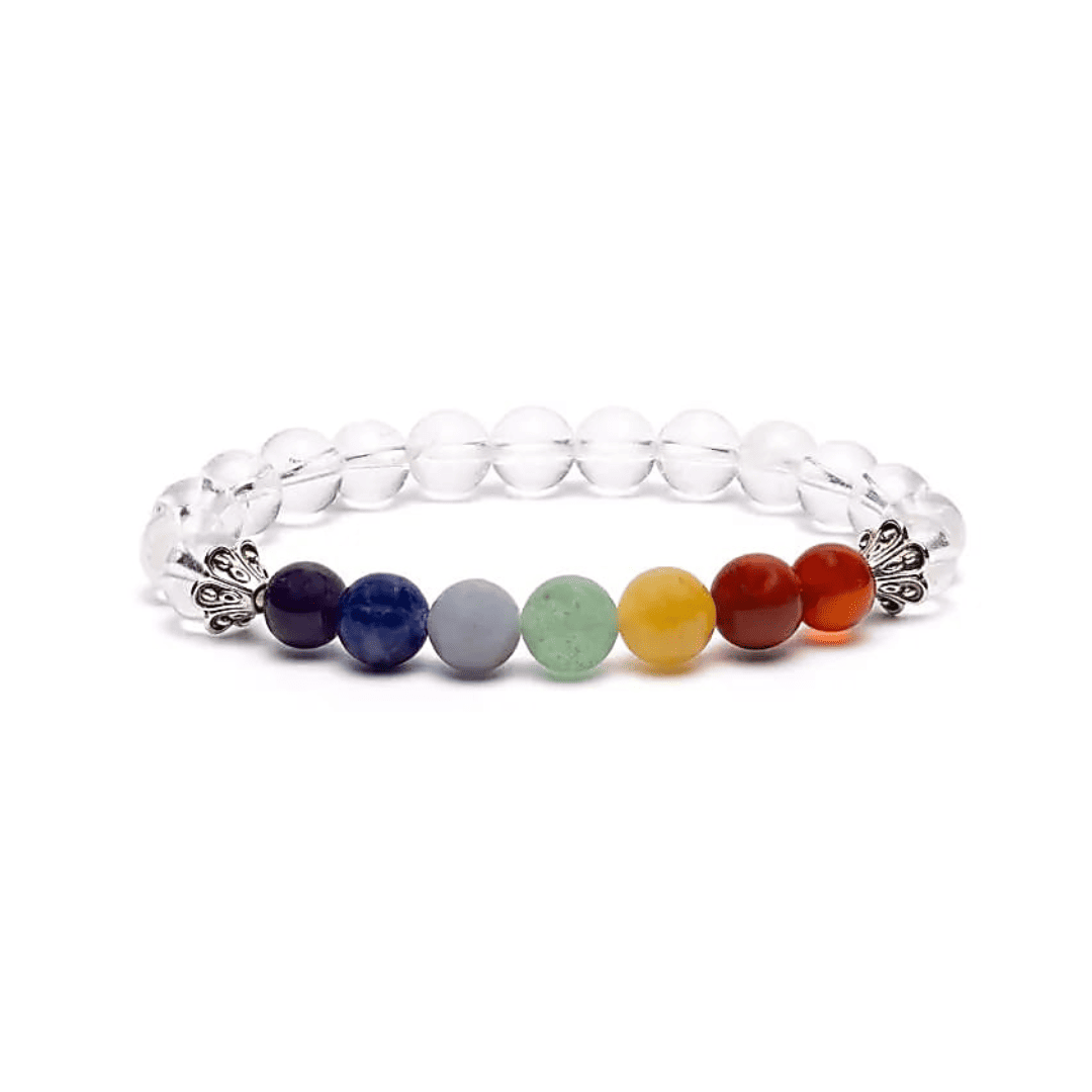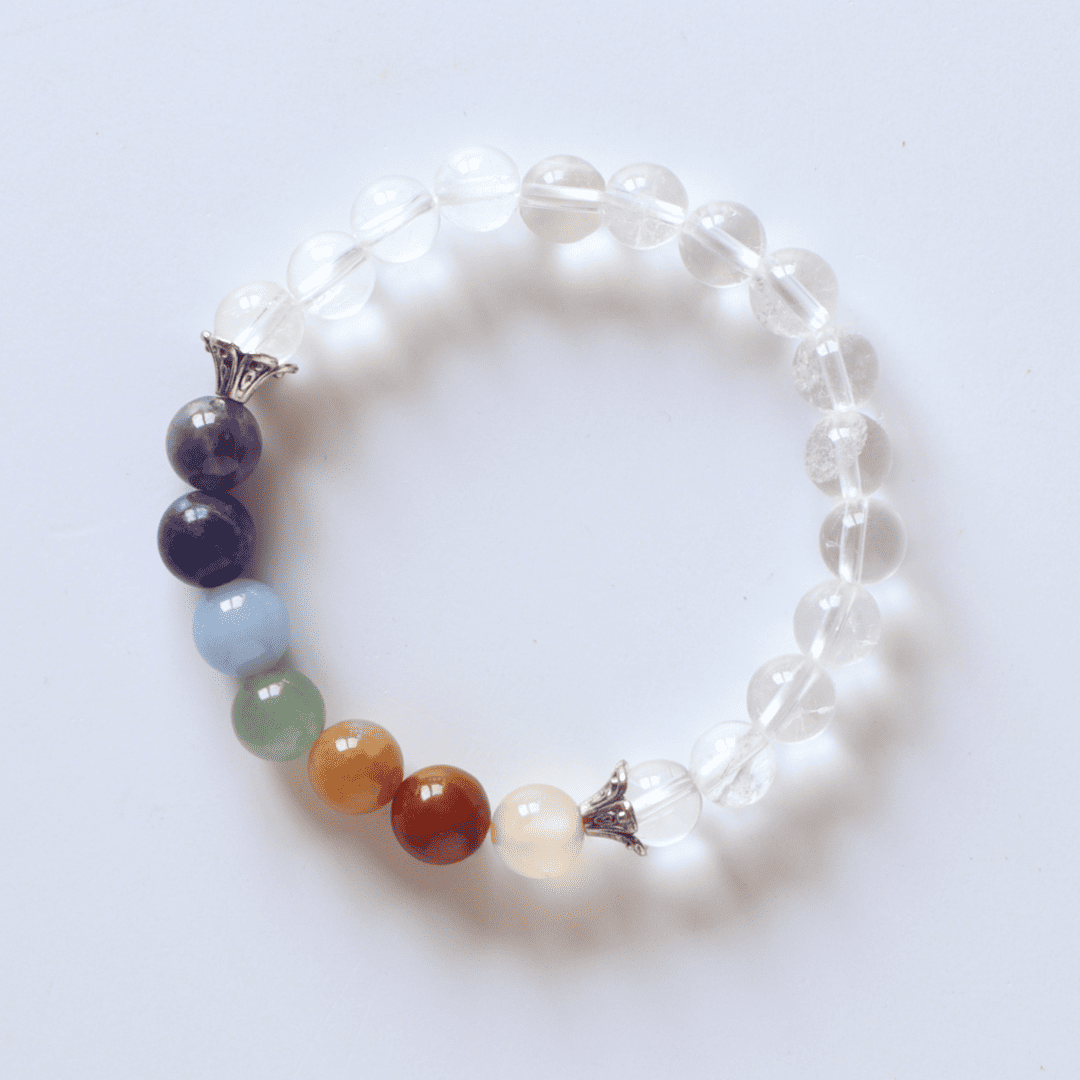 Das Chakren-Armband vereint die symbolische Kraft von acht Edelsteinen, die den Energiezentren des Körpers zugeordnet werden. Roter Jaspis, Karneol, gelber Aventurin, grüner Aventurin, Angelit, Sodalith und Amethyst begleiten die Reise durch die sieben Chakren. Bergkristall vollendet die Reihe als Stein der Klarheit und Reinheit, der die Energien verstärken und ins Gleichgewicht bringen soll. Zusammen entsteht ein Schmuckstück, das für Harmonie, Ausstrahlung und innere Balance steht. Ein Armband, das Schönheit und symbolische Bedeutung miteinander verbindet und dich auf deinem persönlichen Weg begleiten kann.