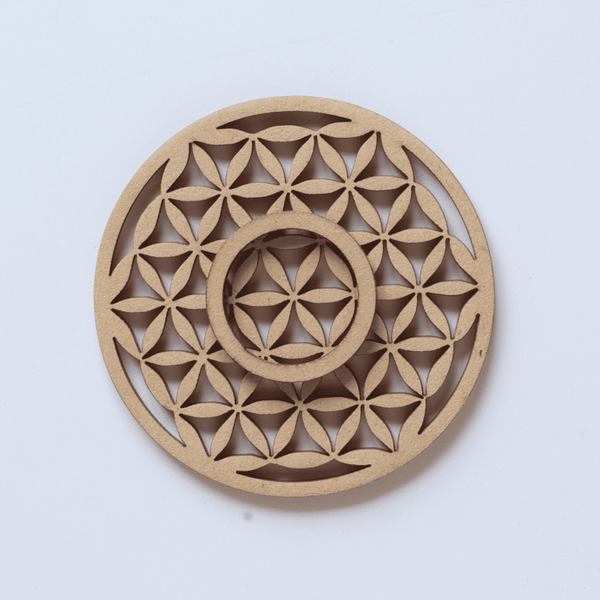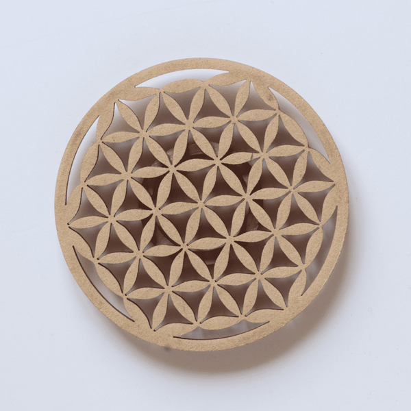 Ein besonders schöner und schlichter Ständer für deine Edelstein- oder Kristallkugel. Lasergeschnittener Edelsteinständer aus MDF (Holzfaserverbundplatte) in Form einer Blume des Lebens.