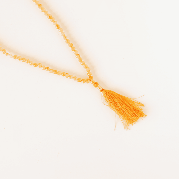 Die 108 Perlen dieser Mala sind aus strahlendem Citrin.Der helle Stein bringt Licht und positive Energie in Dein Leben. Citrin wird oft als Stein des Glücks, des Wohlstands und der Fülle bezeichnet – er unterstützt Dich dabei, Selbstvertrauen zu stärken und Deinen inneren Antrieb zu aktivieren. Diese Mala hilft Dir, mit Freude und Leichtigkeit durch den Tag zu gehen, Deine Ziele klar zu fokussieren, neue Inspiration zu finden und Fülle zu kreieren. Sie ist nicht nur ein wundervoller Begleiter für Deine Meditation, sondern auch ein Symbol für den Reichtum, der Dich bereits umgibt.