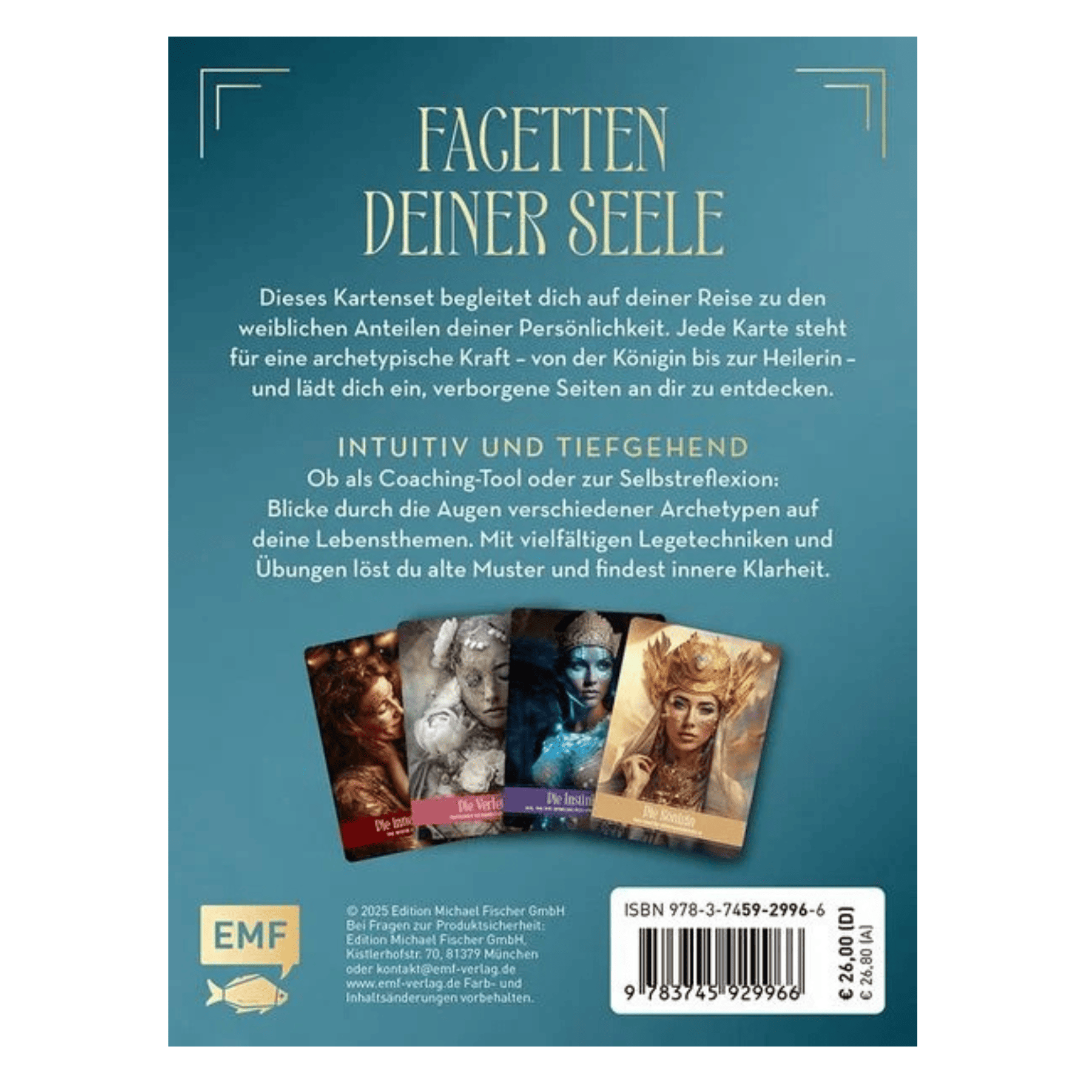Dieses Kartenset schenkt dir einen Zugang zu den weiblichen Urbildern deiner Persönlichkeit. Fünfzig ausdrucksstarke Karten verbinden sich mit einem umfangreichen Begleitbuch, das dich auf deiner inneren Reise unterstützt. Die hochwertige Magnetbox mit ihrer edlen Prägung und die Karten mit Goldrand machen das Set zu einem besonderen Begleiter, der dich immer wieder neu inspiriert.