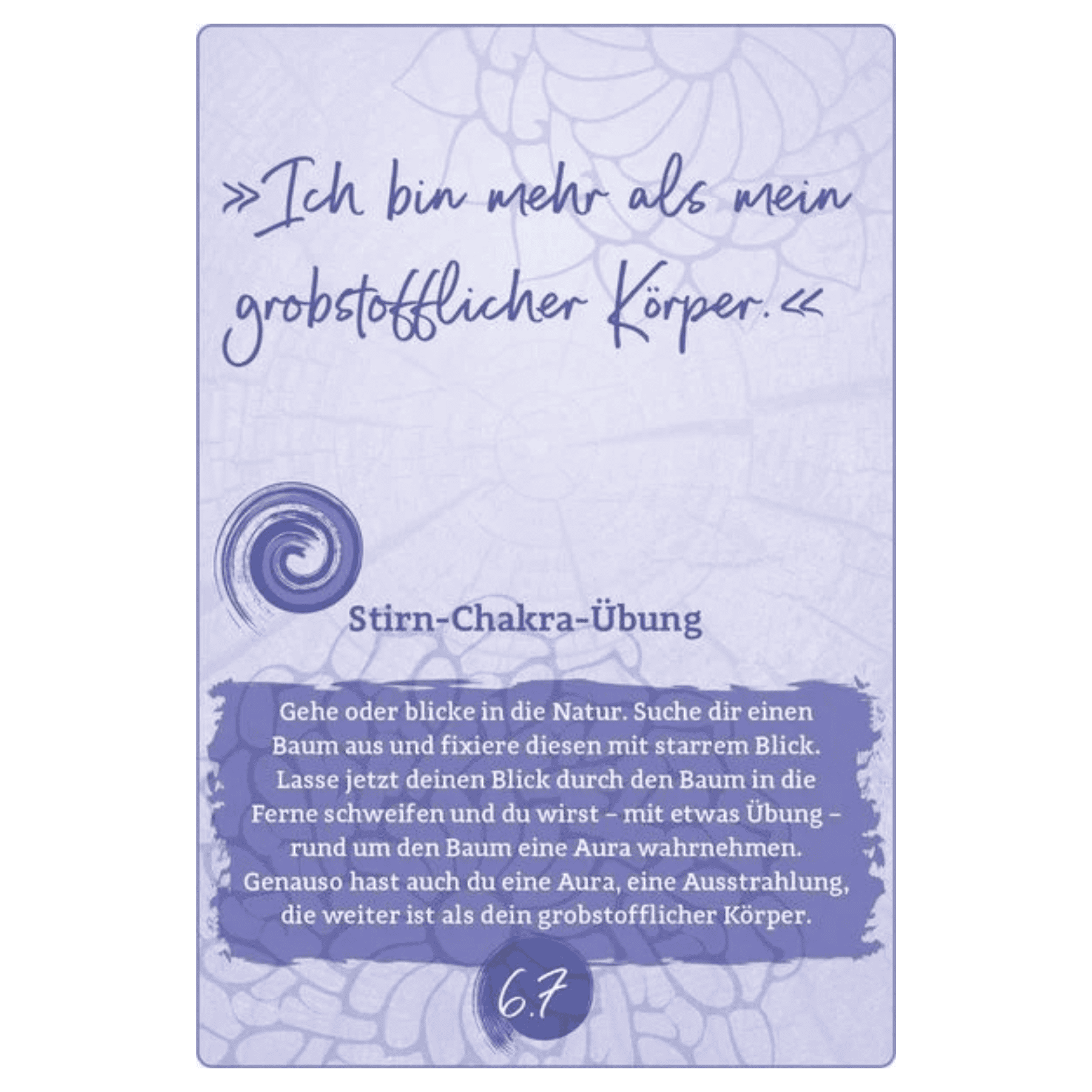 Ziehe intuitiv eine Karte oder arbeite gezielt mit den Karten eines bestimmten Chakras. Sie begleiten dich auf deiner inneren Reise und geben dir Antworten auf sieben essenzielle Lebensfragen: