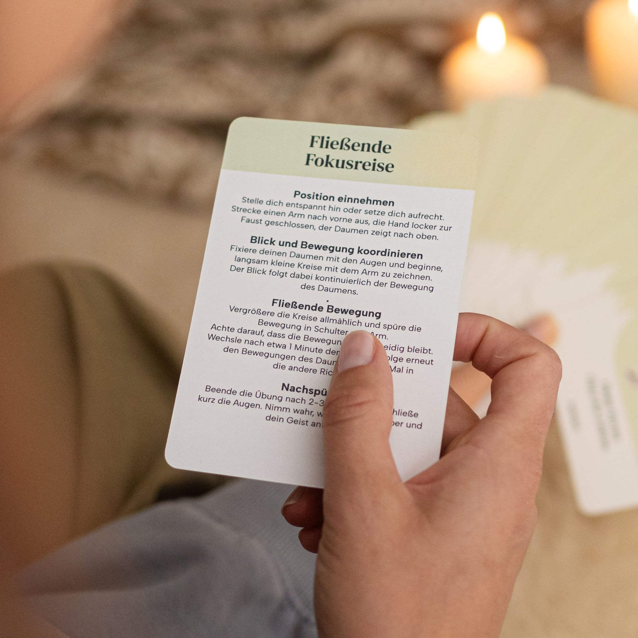 Ziehe eine Karte, folge der sanften Anleitung und finde zurück in deine Mitte: ob für kurze Pausen zwischendurch, als tägliche Routine oder in herausfordernden Situationen wie innerer Unruhe oder Schlaflosigkeit.
