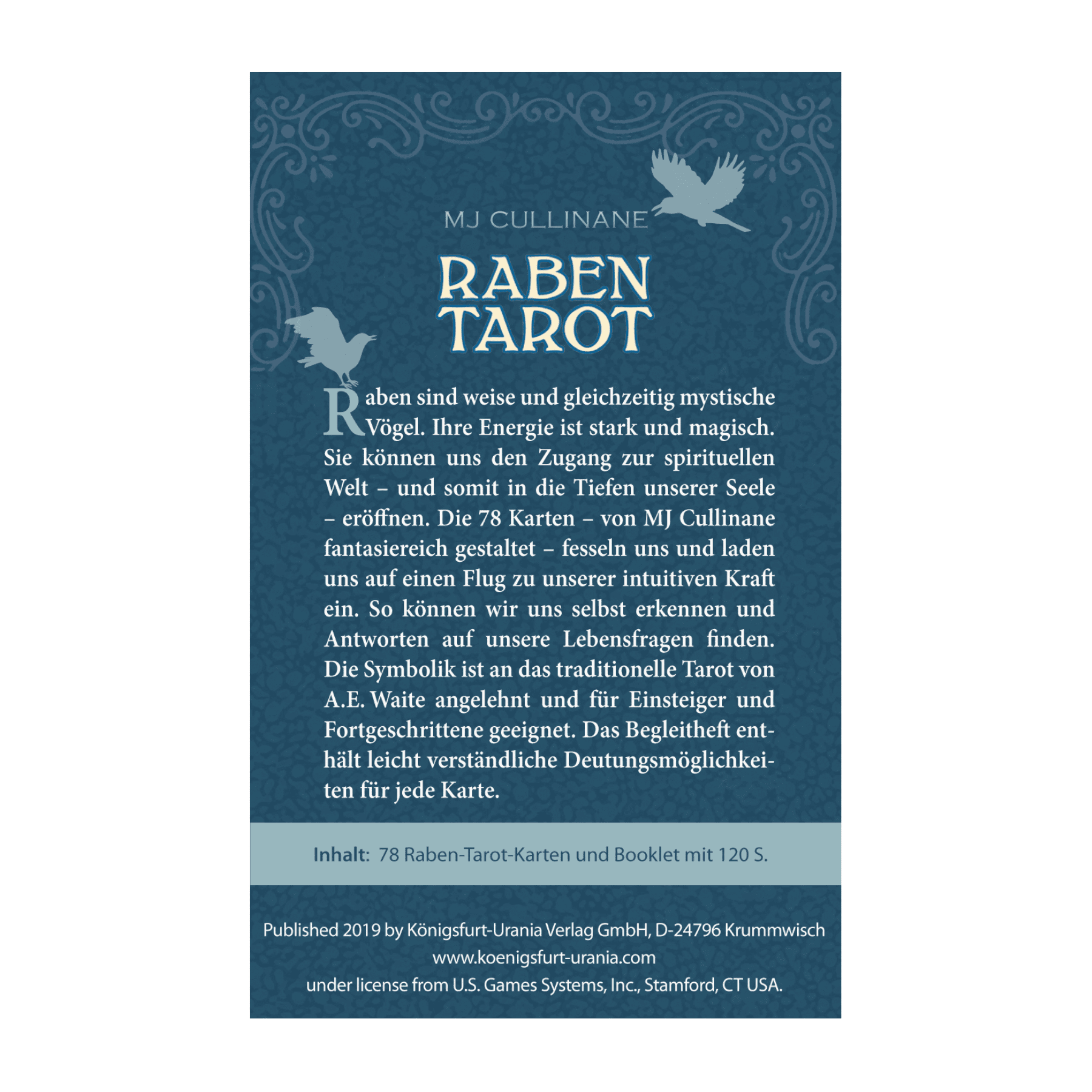 Raben gelten als Hüter alter Weisheiten, als Boten zwischen den Welten. Ihre Magie ist tief, ihr Blick durchdringend – sie sehen, was uns oft verborgen bleibt. Dieses außergewöhnliche Tarotdeck verbindet die kraftvolle Energie dieser mystischen Vögel mit der Symbolik des traditionellen A.E. Waite Tarots.