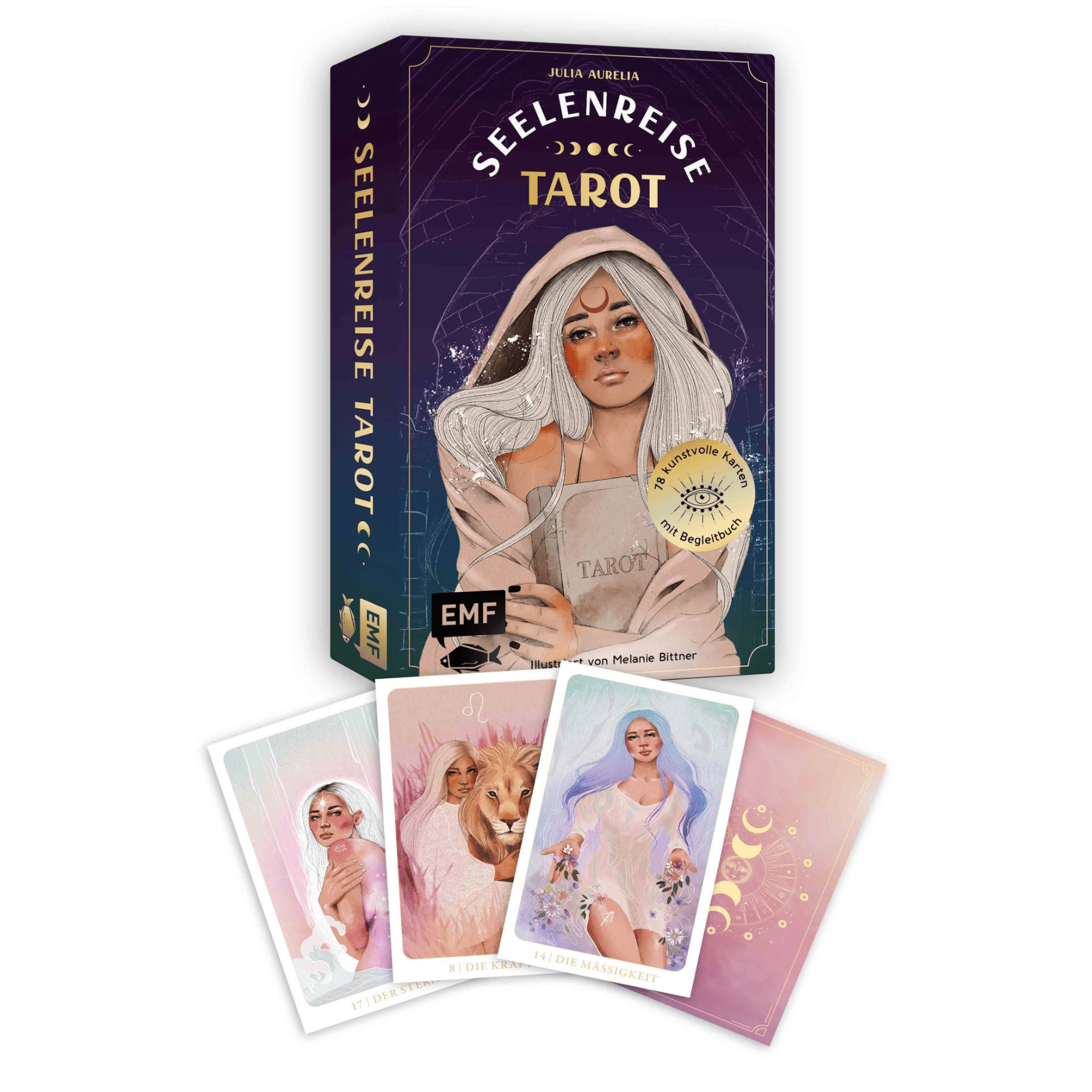 Das Seelenreise Tarot wurde für dein persönliches und spirituelles Wachstum erschaffen. Die traditionellen Archetypen der großen Arkana erstrahlen in den wunderschönen, modernen Illustrationen von Melanie Bittner und ermöglichen es dir, ihre Bedeutungen spielend leicht und intuitiv zu verstehen. Entdecke, an welchem Punkt deiner Seelenreise du gerade stehst und lass die Karten zu einem direkten Sprachrohr deiner Seele werden, das dich liebevoll auf deinem Weg begleitet und unterstützt.