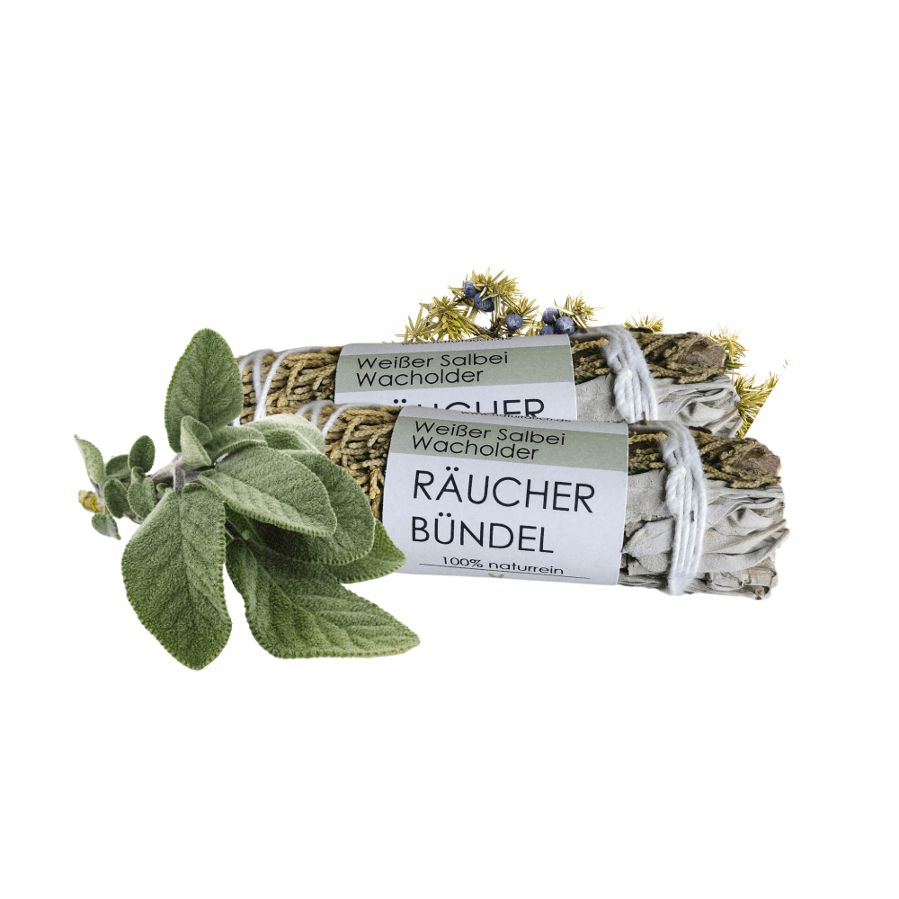 Weißer Salbei und Wacholder gehören zu den verbreitetsten Räucherpflanzen. Genutzt werden sie vor allem zur energetischen Reinigung von Häusern und Räumen, sowie zur Aura-Reinigung. Man sagt, Fremdenergien können mit Hilfe dieser Pflanzen gelöst werden.