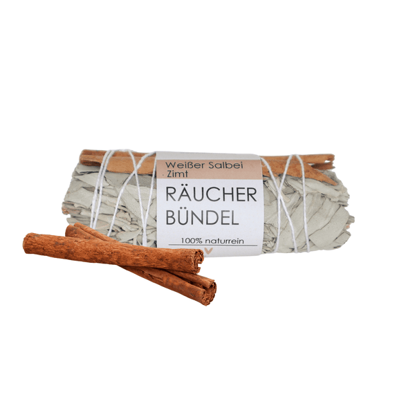 Erlebe die reinigende und beruhigende Kraft unseres Räucherbündels aus weißem Salbei und Zimt. Dieses hochwertige Räucherbündel ist die perfekte Wahl für alle, die ihr Zuhause oder ihre Umgebung auf natürliche Weise reinigen und energetisieren möchten. Es eignet sich auch perfekt für Räucherrituale. In Kombination mit Zimt entfaltet sich eine ganz besondere Wirkung und Duftkomposition. Zimt hilft dabei, das Herz zu öffnen und Ängste und Verspannungen zu lösen.